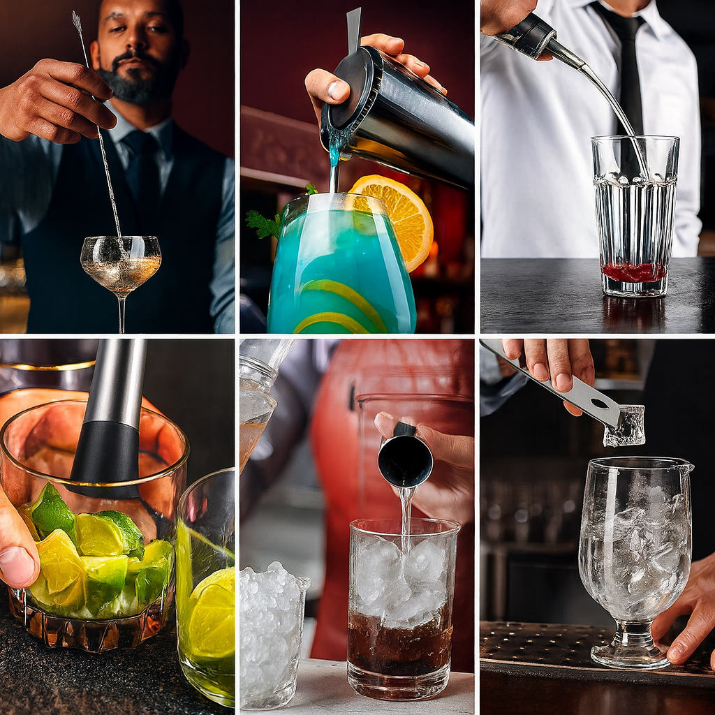 🔹 O kit perfeito para preparar drinks com elegância e maestria!